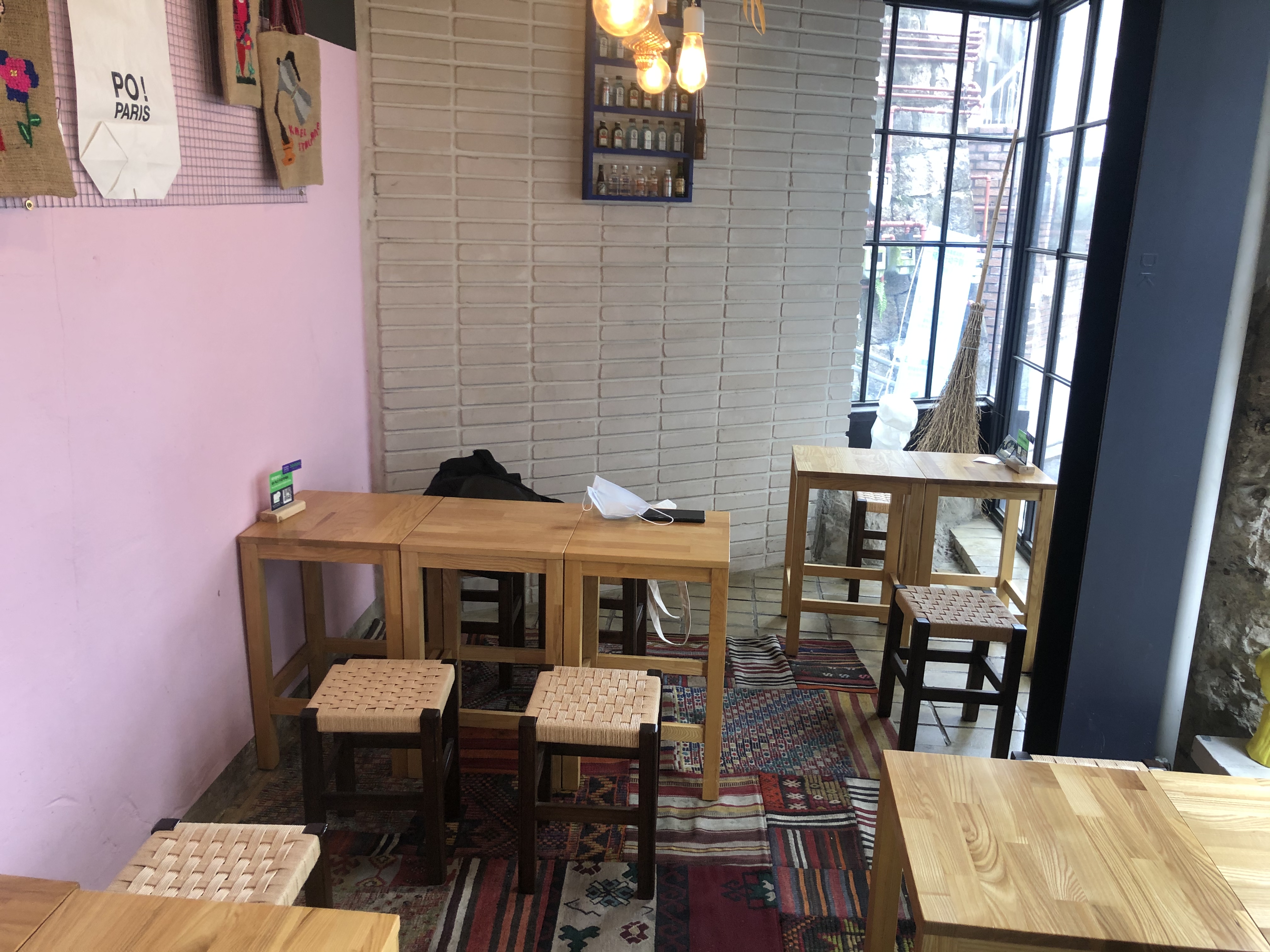 먼저 들어가면 이렇게 좌석이 마련되어있어요. 자리가 많지 않고, 2명이 앉을 수 있는 테이블 3개 그리고 4명이 앉을 수 있는 테이블 1개가 있어요!